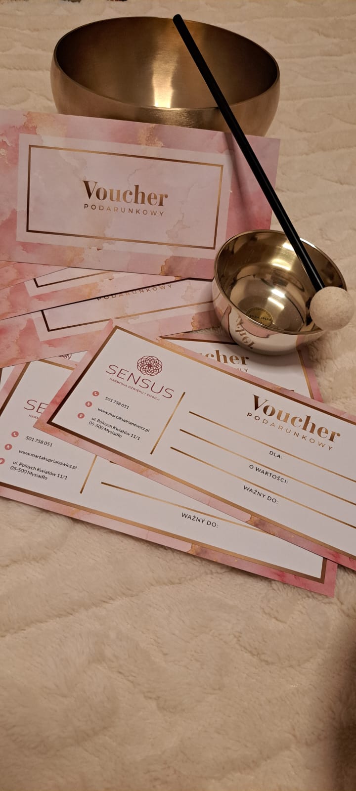 Voucher możesz wykorzystać na dowolną usługę z mojej oferty – od masażu dźwiękiem misami tybetańskimi, przez sesję Kodem Emocji, po pracę z przekonaniami w metodzie Theta Healing.